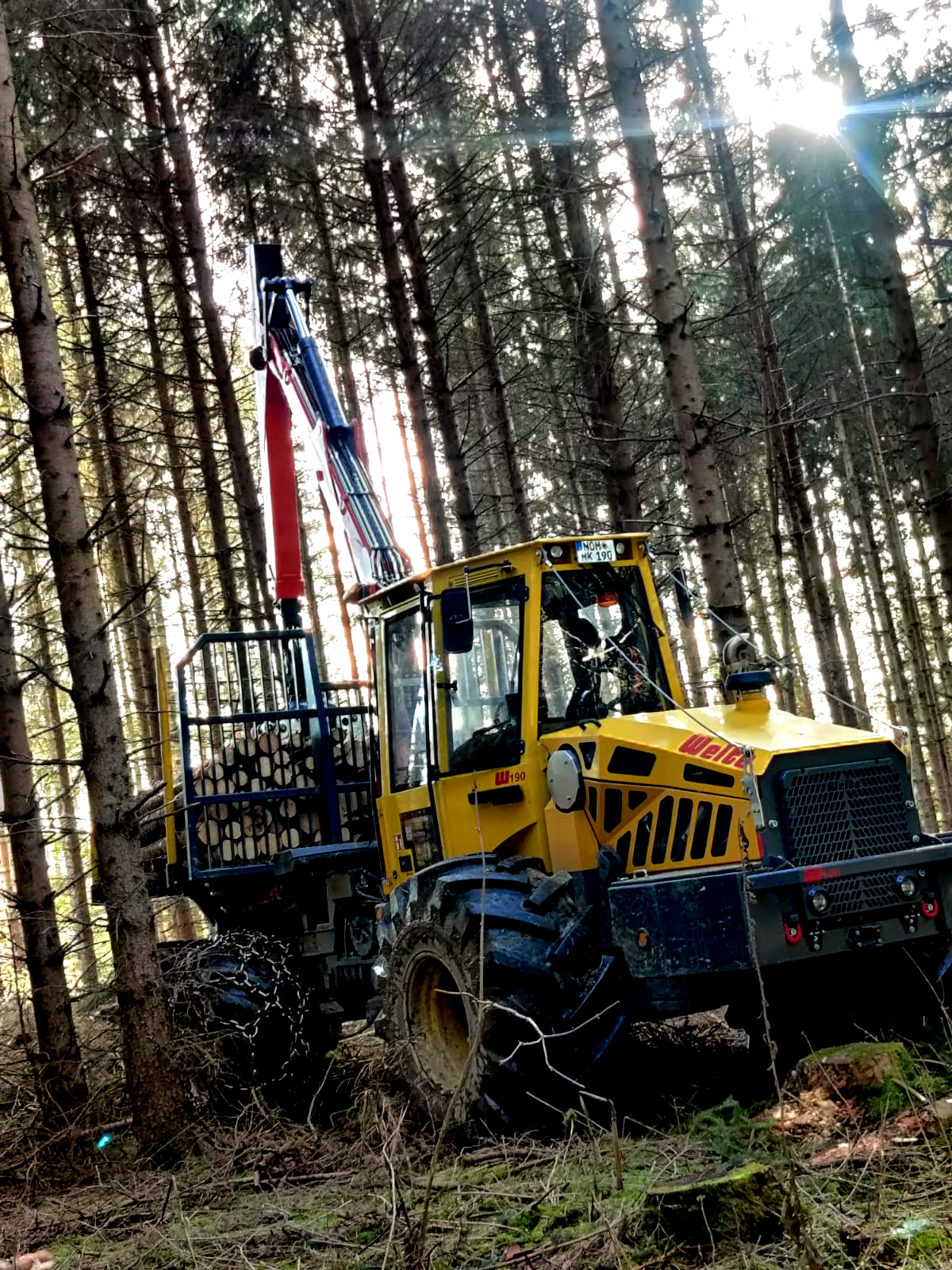 Die Forstmaschinen werden von uns schnell und sicher von A nach B transportiert und gewährleisten einen reibungslosen, schnellen Einsatz.